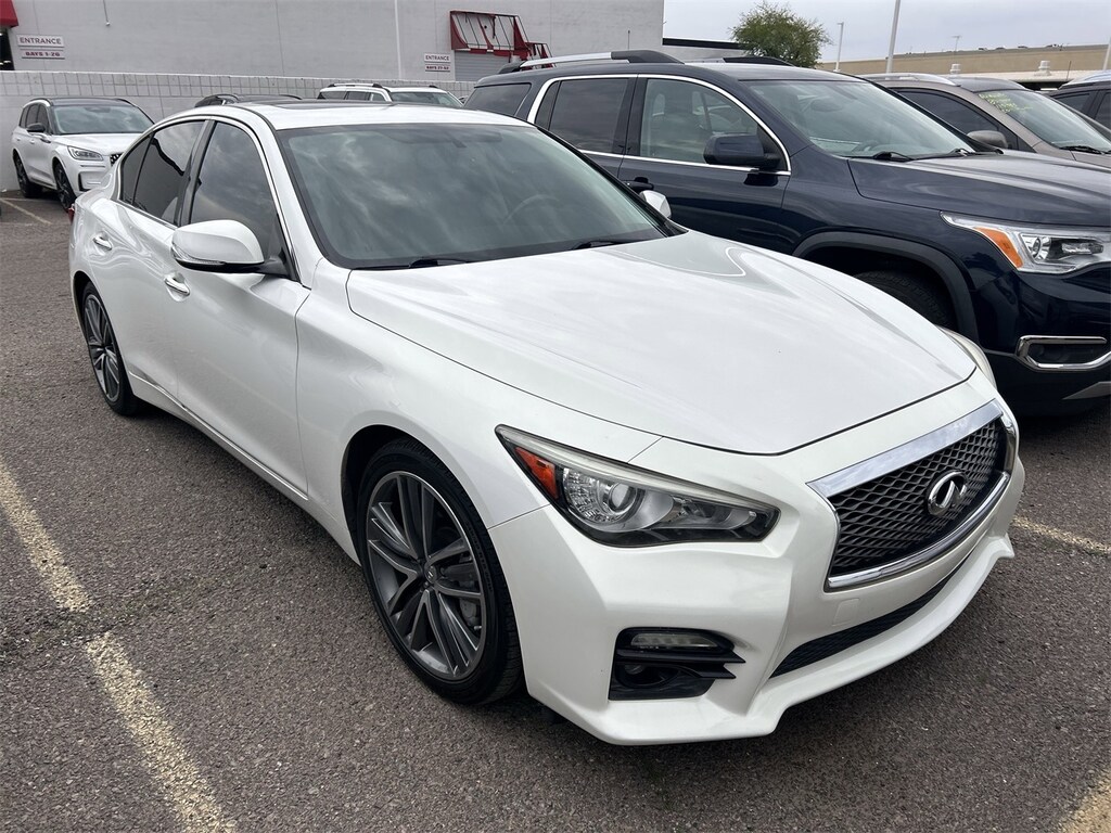 Recent Arrival! Q50 Sport, 4D Sedan, 3.7L V6 DOHC 24V, 7-Speed Automatic with Manual Shift, RWD, Moonlight White, Graphite Leather. Priced below KBB Fair Purchase Price! 20/29 City/Highway MPG Moonlight White 2015 INFINITI Q50 Sport RWD 7-Speed Automatic with Manual Shift 3.7L V6 DOHC 24V