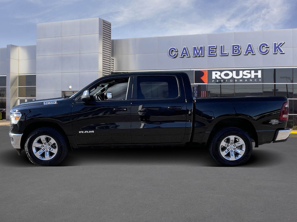 Stay connected and in control with the integrated navigation system, Bluetooth connectivity, and a premium sound system that brings your favorite music to life. Safety is prioritized with front collision mitigation, stability and traction control, and a comprehensive airbag system. Convenience features like remote engine start, power folding mirrors with memory, and a backup camera make daily driving effortless. The Ram 1500 Laramie is designed to meet the needs of drivers who require strength, refinement, and cutting-edge technology in one commanding package.